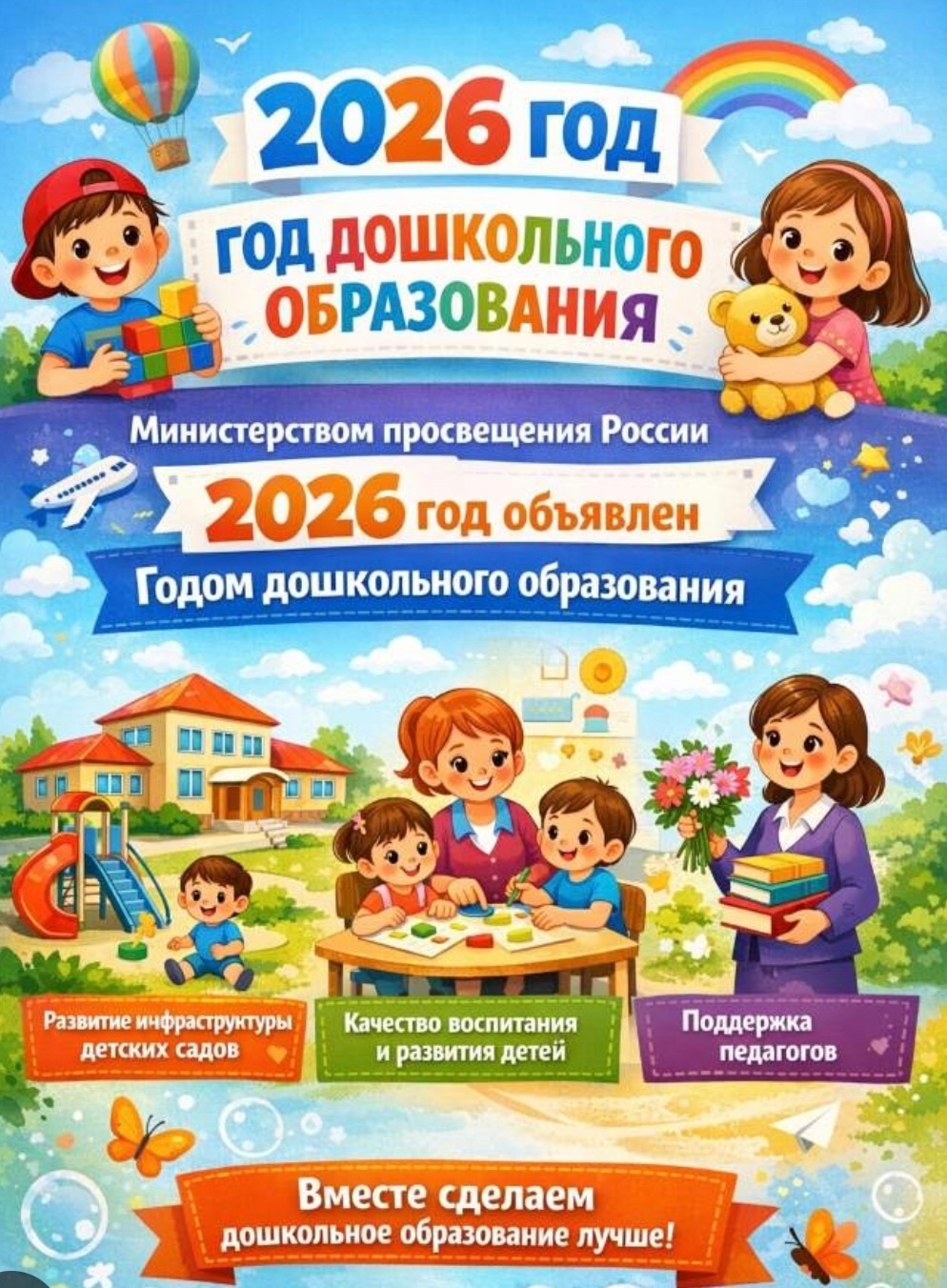 📌2026 год объявлен Министерством просвещения Российской Федерации Годом дошкольного образования в системе образования.